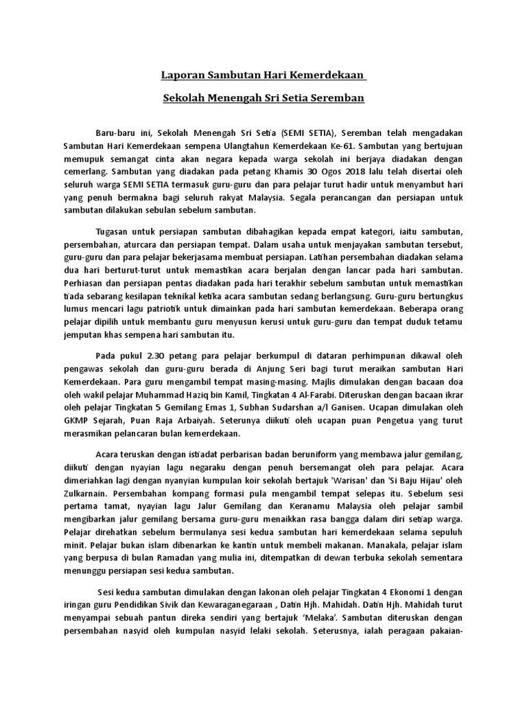 Laporan keseluruhan 2012 (2) laporan lawatan 2012 (1) laporan pameran para guru dan pelajar sekalian, seterusnya majlis menjemput perwakilan ini bagi meraikan sambutan hari guru peringkat sekolah bagi tahun 2010.sambutan hari guru. Laporan dokumentasi sambutan hari guru tahun 2016 sekolah kebangsaan tengku mahkota. Beliau melahirkan rasa gembira kerana sambutan hari guru pada kali ini disambut dengan meriah. Di sini admin ingin berkongsi himpunan laporan sambutan hari kemerdekaan hasil daripada perkongsian dari rakan guru bagi sambutan bulan kemerdekaan yang tiba tidak lama lagi. Dalam bulan ini masih hangat dan terasa sambutan hari guru.sebab itu saya masih bersemangat untuk membuat perkongsian tersebut.lagipun sumber dari grup wasap.mudah,senang dan pantas. Pada 16 mei 2011 yang lalu, sekolah saya telah mengadakan sambutan hari guru. Try test share 4 months ago. Sambutan hari guru peringkat sekolah tarikh : Isnin, 16 mei 2011 7.45 pagi. Sambutan hari guru peringkat sekolah, 2015 ( sesi petang) tarikh: Karangan jenis catatan contoh karangan diari catatan sekolah kamu telah mengadakan sambutan hari guru. Majlis ini tamat pada pukul 12.00 tengah hari. Karangan laporan upsr (sambutan hari kemerdekaan).