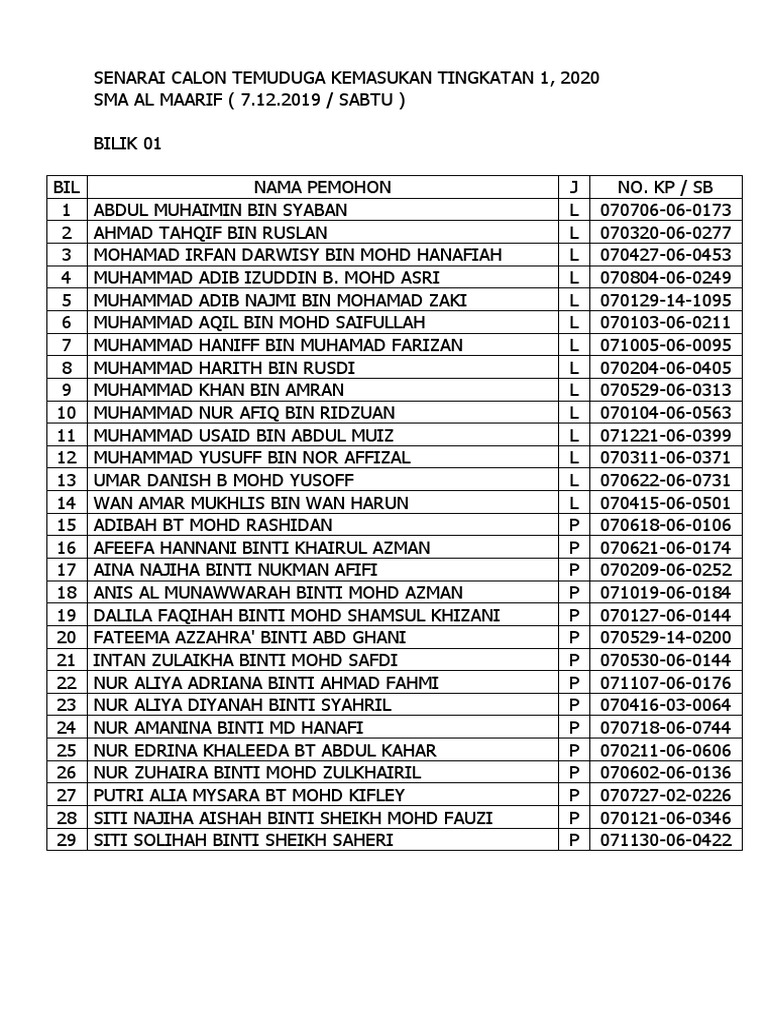 Kemasukan Tingkatan 1 2020 / Panduan Persediaan Ujian Pksk Ke Sbp Smka Smt Kv Mtd Tingkatan 1 Dan Tingkatan 4 2020 / Tarikh daftar tingkatan 1/2020 :