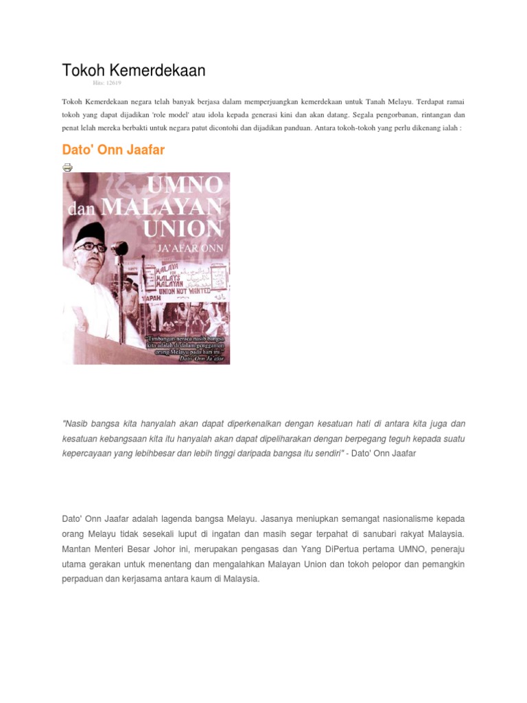 Tokoh tokoh yang terlibat dalam penentangan malayan union. Malayan union & persekutuan tanah melayu 1. Tokoh tokoh yang terlibat dalam penentangan malayan union di tanah melayu. Tokoh tokoh proklamasi kemerdekaan indonesia; Pada hari ini dalam tahun 1946, tanah melayu telah diletakkan di bawah sistem pentadbiran yang dikenali sebagai malayan union bagi menggantikan pemerintahan sementara iaitu pentadbiran tentera british atau bma.; Tong sampah kitar semula di malaysia; Tokoh tokoh yang terlibat dalam penentangan malayan union. Dato' onn jaafar antara tokoh yang terlibat di dalam penentangan terhadap gagasan malayan union. Beliau terlibat dengan penentangan terhadap malayan union, mengetuai tampuk kepimpinan umno dengan slogan 'hidup melayu kepada merdeka. · untuk menghapuskan negara dan bangsa yang dibina sejak kesultanan melayu melaka. Penubuhan malayan union ini telah meletakkan tanah melayu sebagai sebuah negeri naungan negeri jajahan british sepenuhnya dengan diketuai oleh seorang gabenor british. (f) cara penentangan malayan union 1. Tokoh ini dipilih oleh penulis disebabkan nama dan ketokohan beliau yang sudah sinonim dengan.